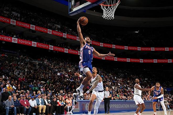 本場比賽中,76人的替補后場大將昆汀-格萊姆斯(Quentin Grimes)的表現(xiàn)算得上是相當不錯。格萊姆斯全場出場35分34秒,投籃10中6,三分線外6中3,罰球5中4,得到了19分2籃板3助攻1搶斷2蓋帽的全面數(shù)據(jù),還有2次犯規(guī),正負值為+12。格萊姆斯在進攻端展現(xiàn)出了全面的得分能力,他也是通過各種方式拿下了不少分數(shù),他有著不俗的突破能力,他也可靠的外線投射能力,而且他在傳球和策應(yīng)方面也能夠起到一定的效果。格萊姆斯在防守端的表現(xiàn)更是非常突出的,他有著超強的個人防守能力,他也是對詹姆斯-哈登(James Harden)進行了有效地限制。76人最終能夠有驚無險地戰(zhàn)勝對手,也和格萊姆斯的不俗表現(xiàn)有著密切的關(guān)系。